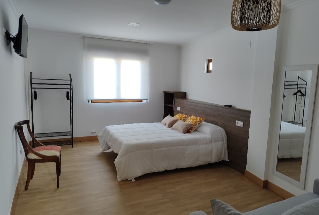 - Burro para la ropa, mesillas, TV, silla, wifi, toallas, menaje de aseo, secador